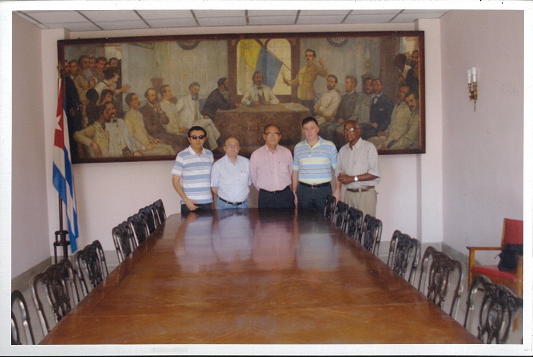 "Delegação da Direção Nacional do PSB, durante a sua visita a Cuba no ano de 2010, o Poder Legislativo do país e são recebidos pelo seu presidente. Na foto, da esquerda para a direita, o vice-pres. Do partido, Roberto Amaral; o Sen. Renato Casagrande; o presidente da Comissão de Relações Exteriores da Câmara de Deputados, Dep. Gabeira e o primeiro secretário do PSB, Carlos Siqueira."