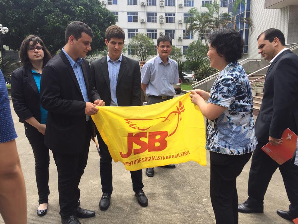 "Rodrigo Dias – Secretário da JSB DF; Tony Sechi – Secretario Nacional da JSB; João Campos – JSB Pernambuco; Larissa Pedro – Presidente DCE UPF e JSB RS; João Vidal – Vereador de Taubaté; em 16 de setembro de 2015. "