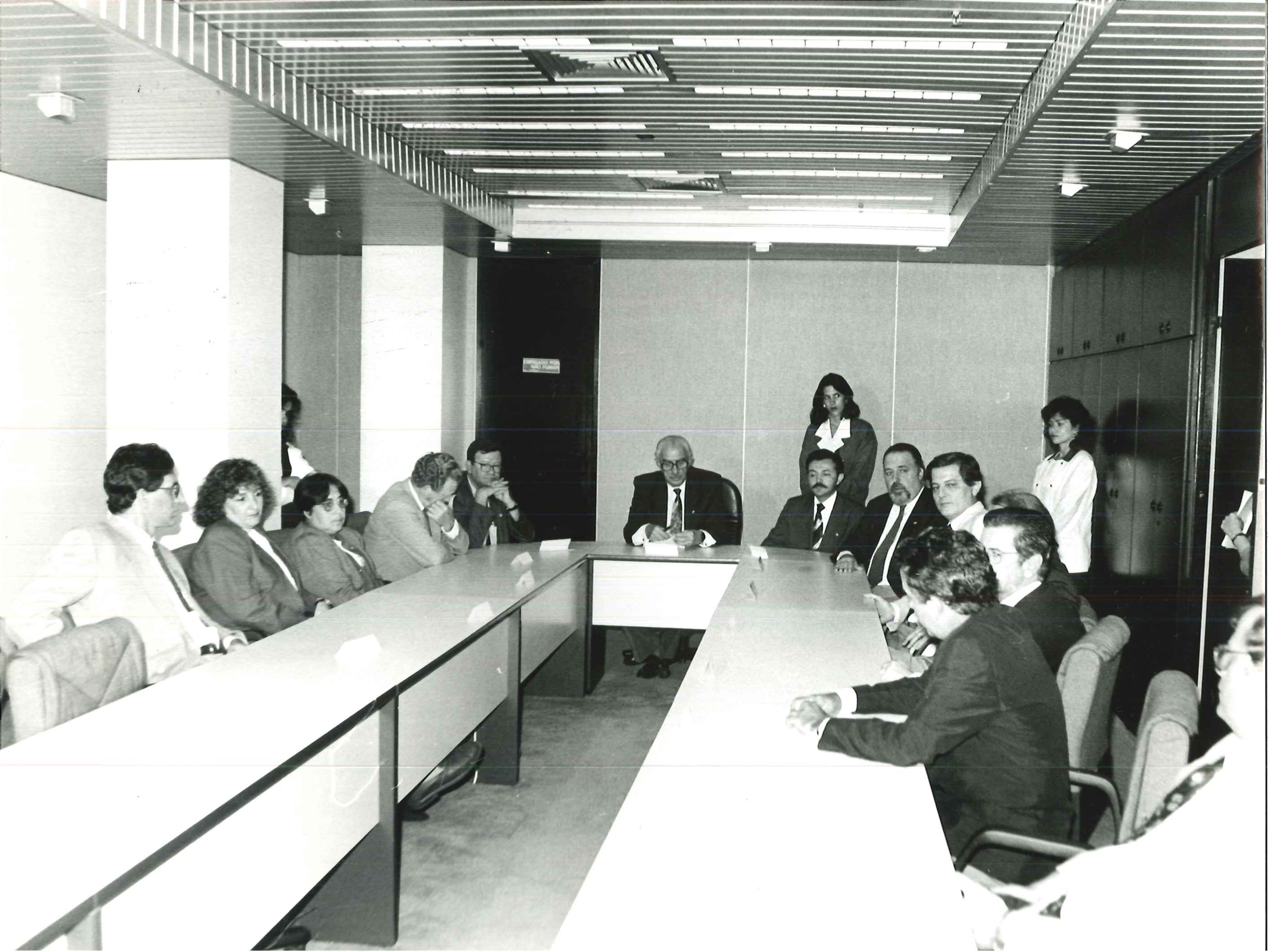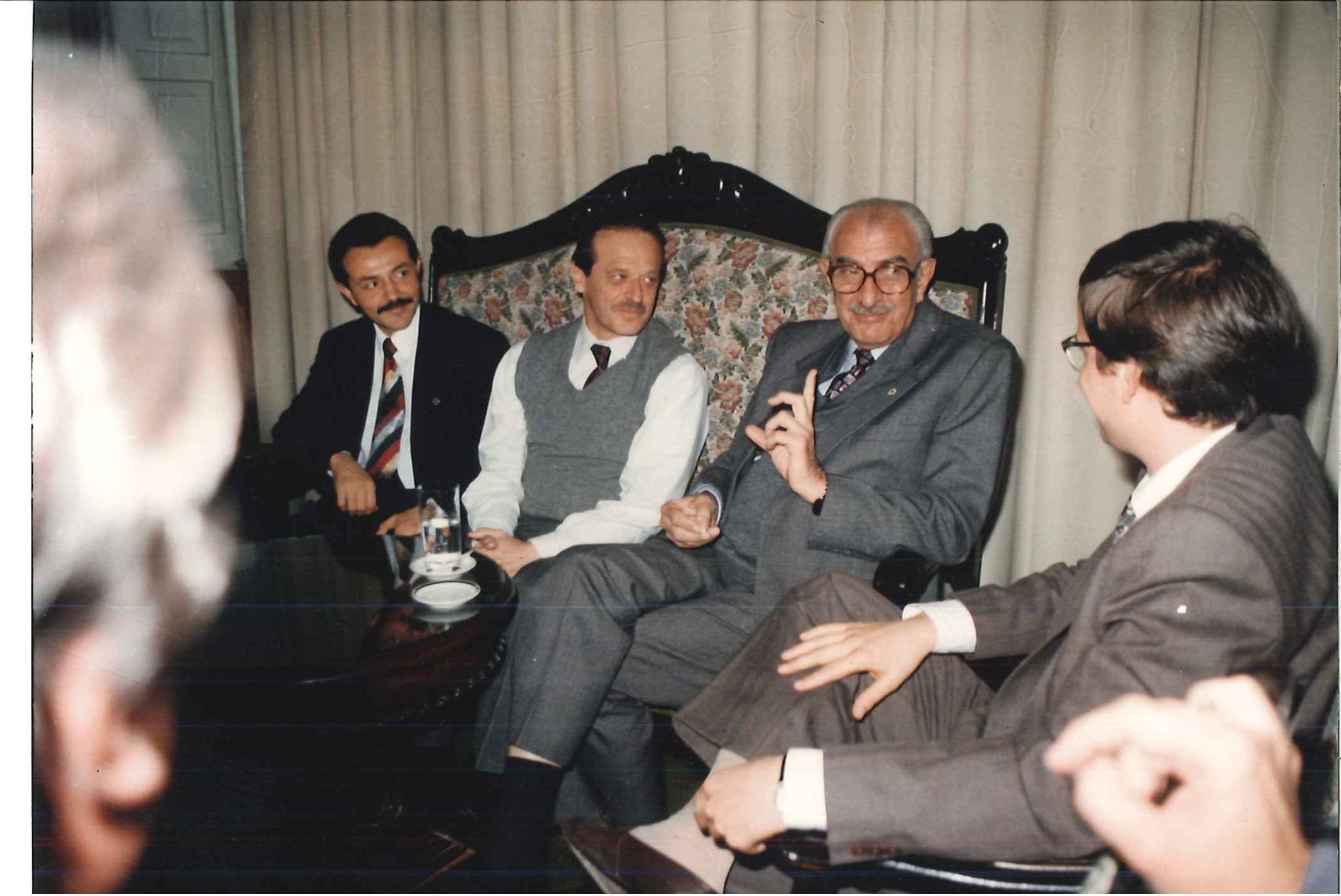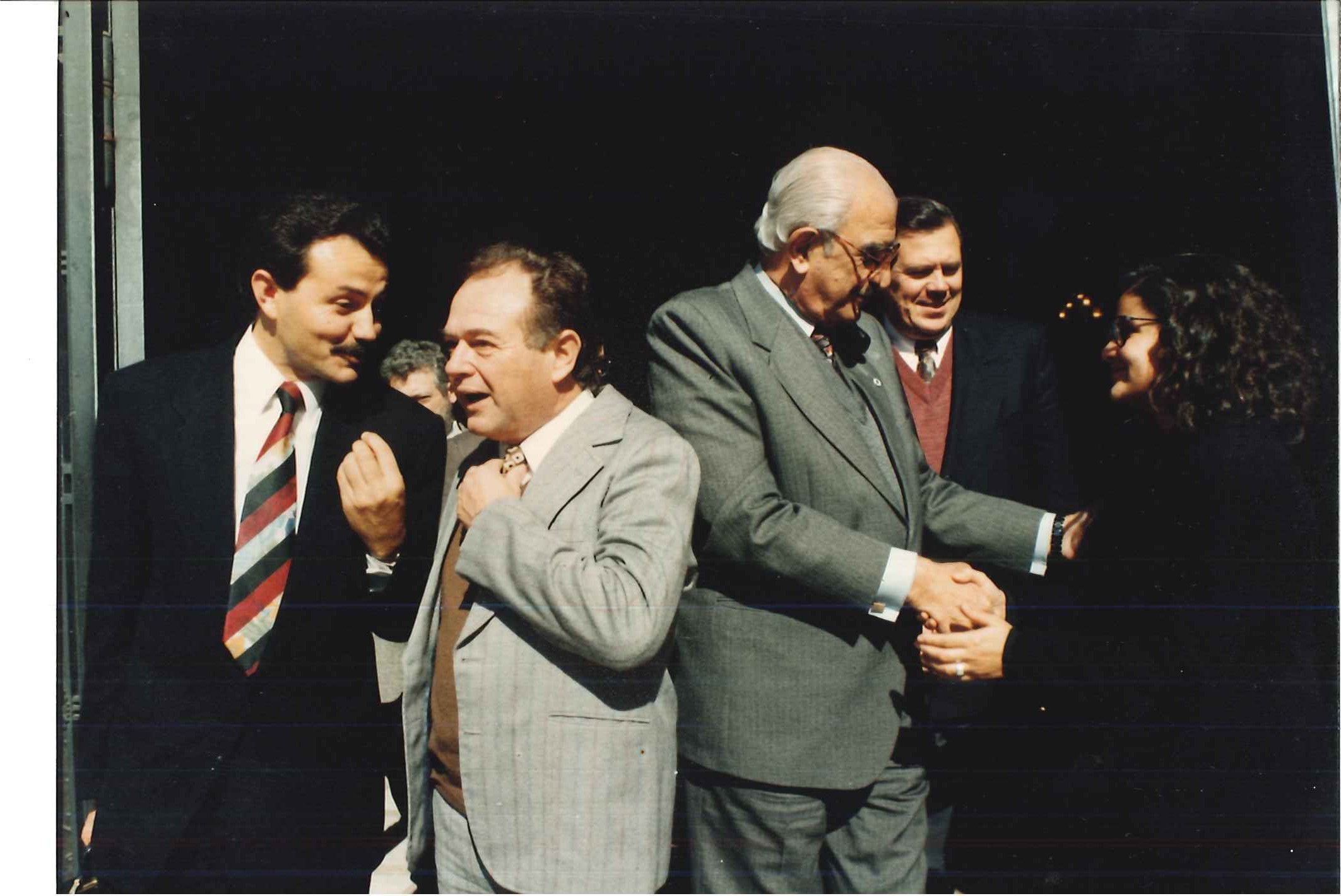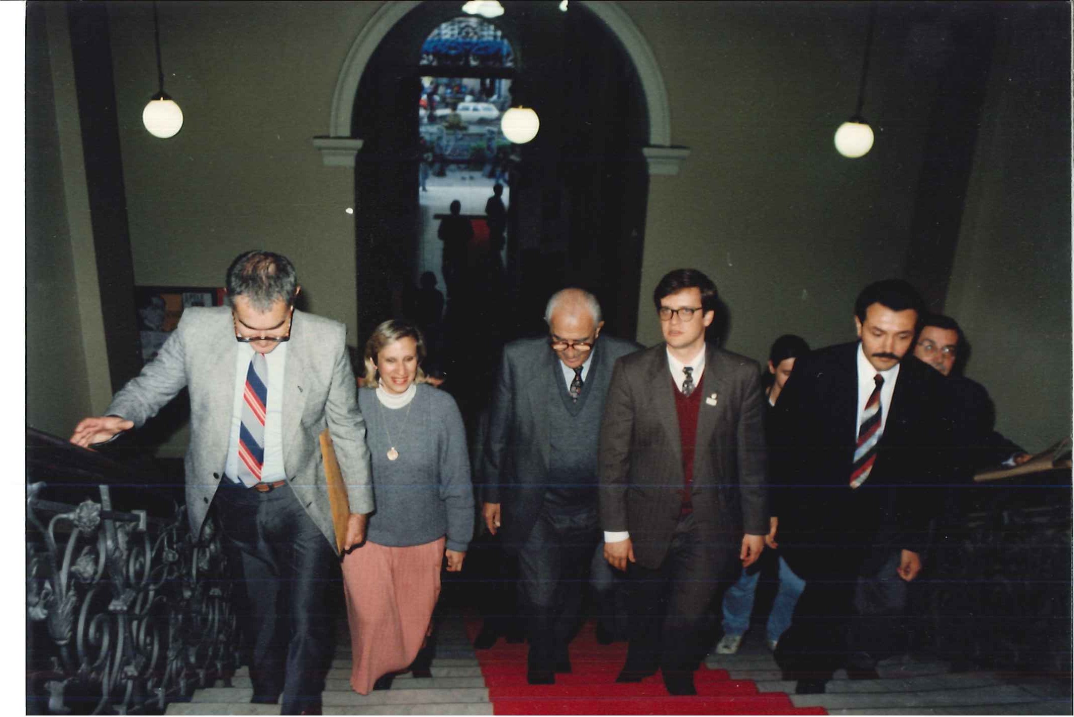 "Min. da Saúde, Jamil Haddad, acompanhado do seu chefe de gabinete, Carlos Siqueira, visitam o Pref. De Porto Alegre, Tarso Genrro (ao centro) em fevereiro de 1993."