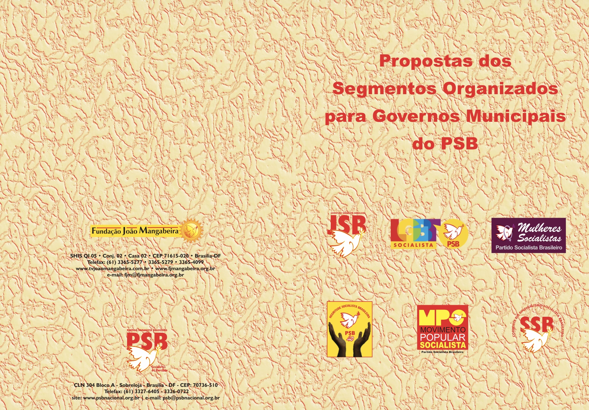 "Este documento é elaborado por diversos segmentos do PSB (Juventude, LGBT, Mulher, Negro, Popular e Sindical) para os governos municipais. Este documento contém políticas públicas que funcionam como forma de contribuição aos programas de governos municipais e com o intuito de que sejam compromissos assumidos por candidatas e candidatos do PSB. O objetivo desse impresso é construir o entendimento de que a participação dos movimentos sociais na proposta de uma plataforma de governo é uma contribuição valiosa e única. Por meio desse documento, que elenca demandas e a necessidade de enfrentamentos das desigualdades existentes no país em todos os segmentos, busca-se o comprometimento dos candidatos com a plataforma de igualdade, assegurando assim, orçamentos para sua implantação."
