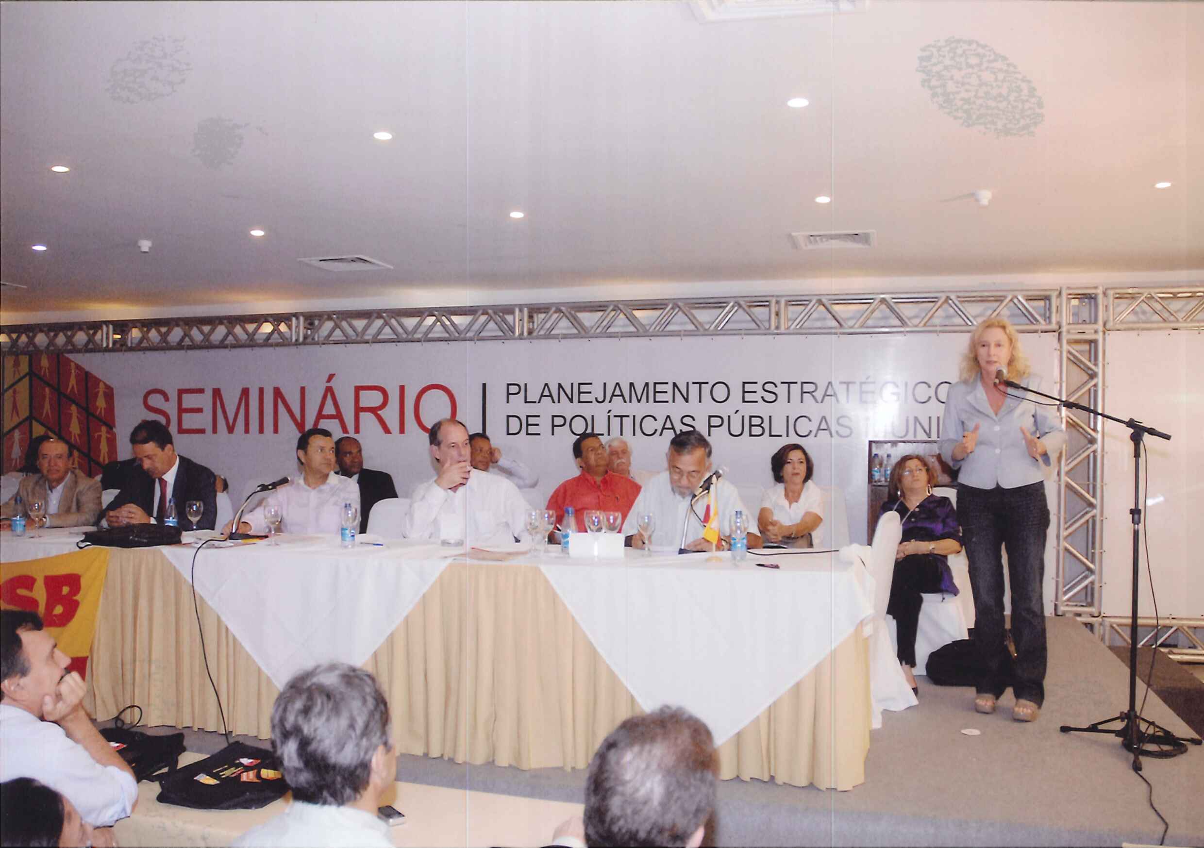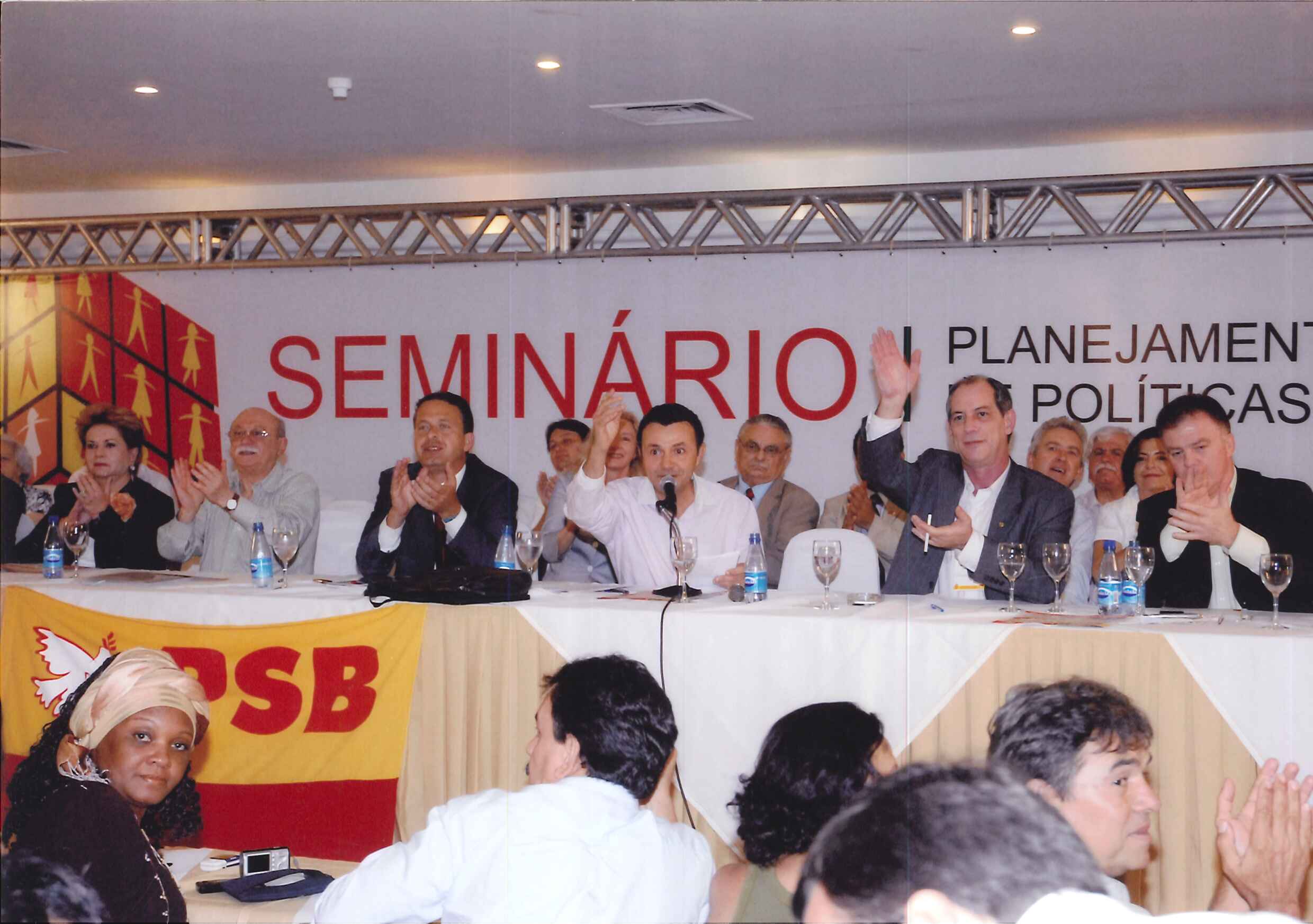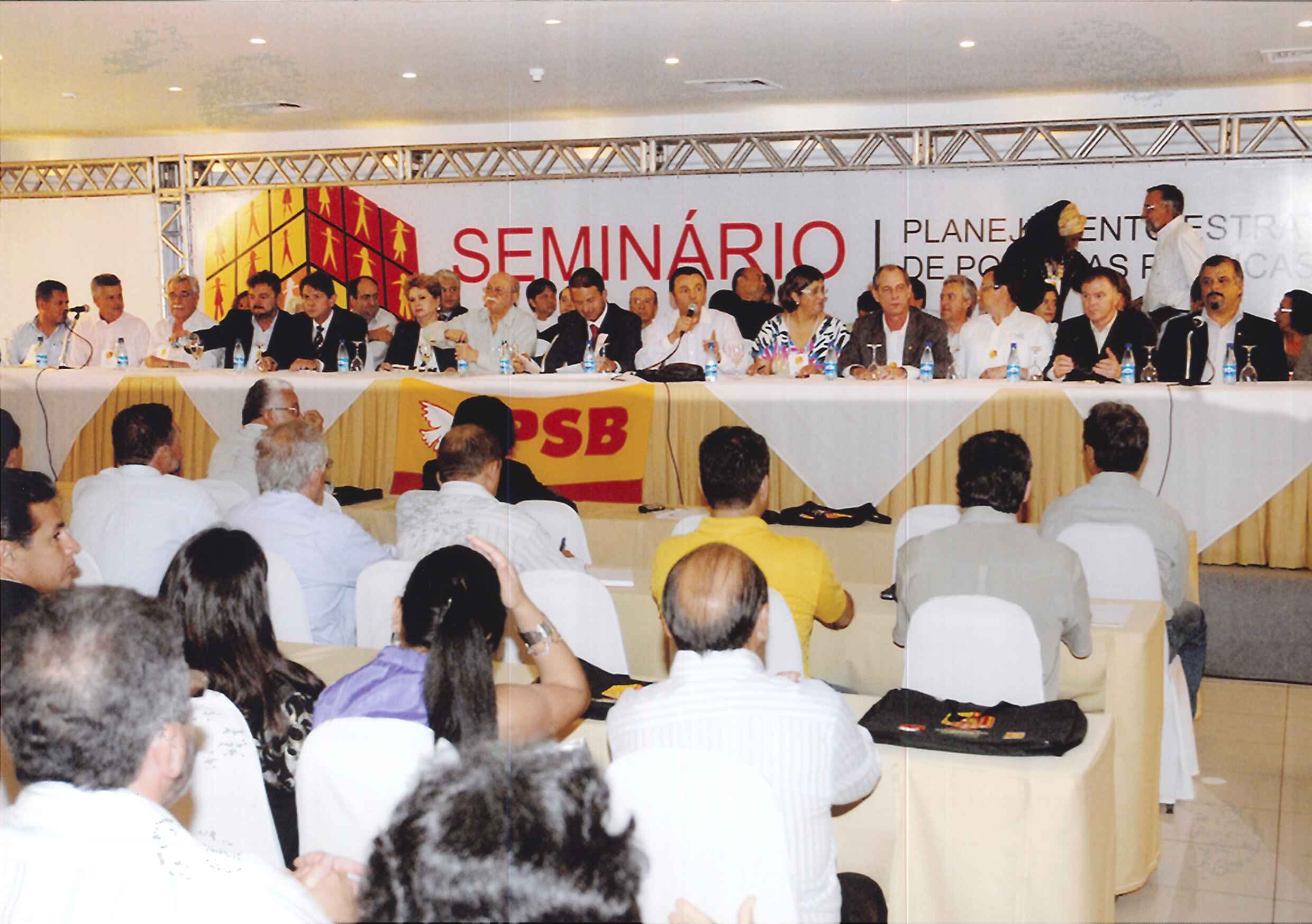 "Mesa de abertura do Seminário Planejamento Estratégico de Políticas Públicas. Da esquerda para a direita: Dep. Alexandre Cardoso, Vice-Gov. Wilson Martins, Gov. Cid Gomes, Gov. Wilva de Faria, Roberto Amaral, Gov. Eduardo Campos, Carlos Siqueira, Mari Machado, Dep. Ciro Gomes, Dep. Beto Albuquerque, Sen. Casagrande, Dep. Márcio França, Pref. Iradilson."