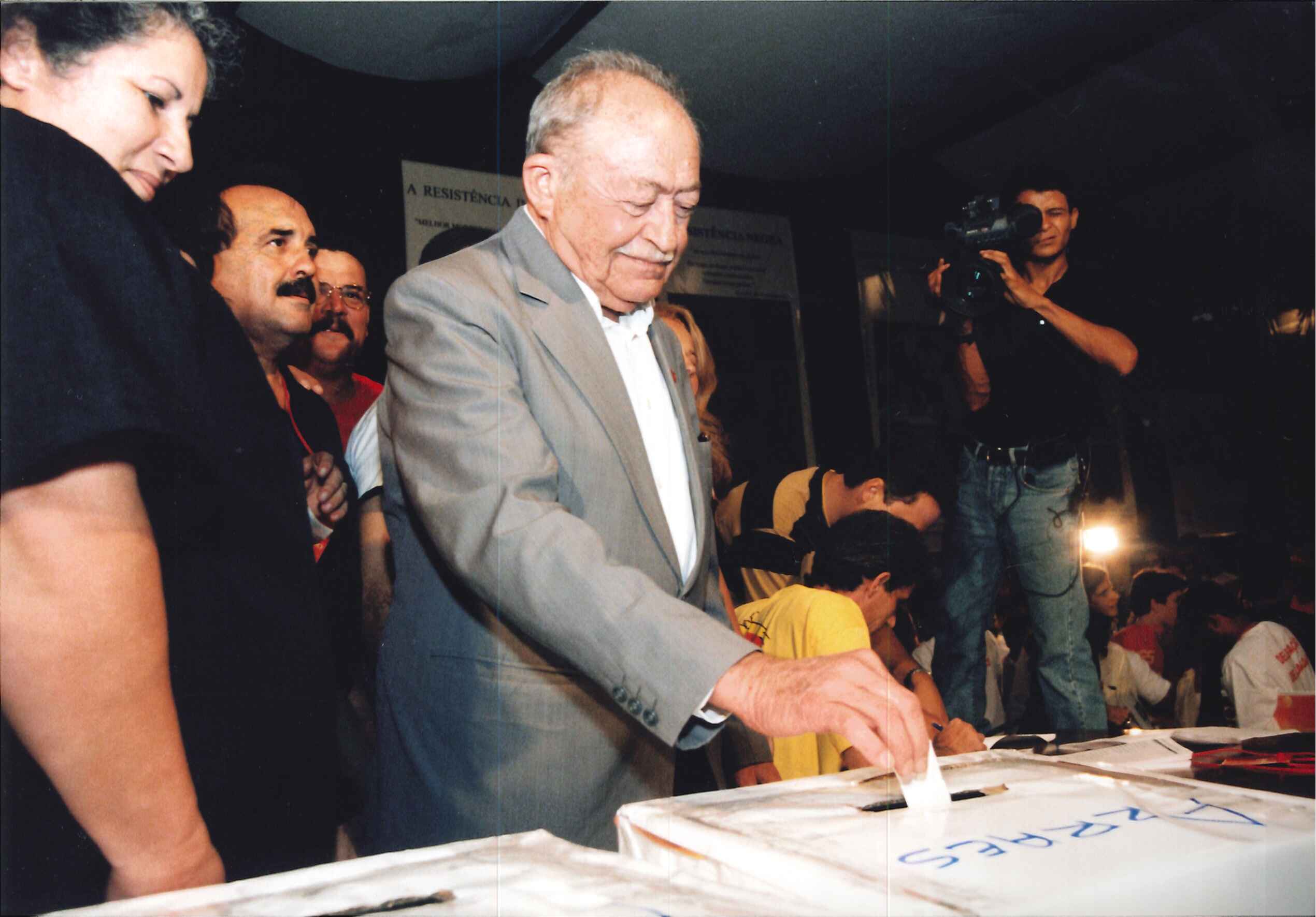 Gov. Miguel Arraes vota na eleição da direção nacional do partido.