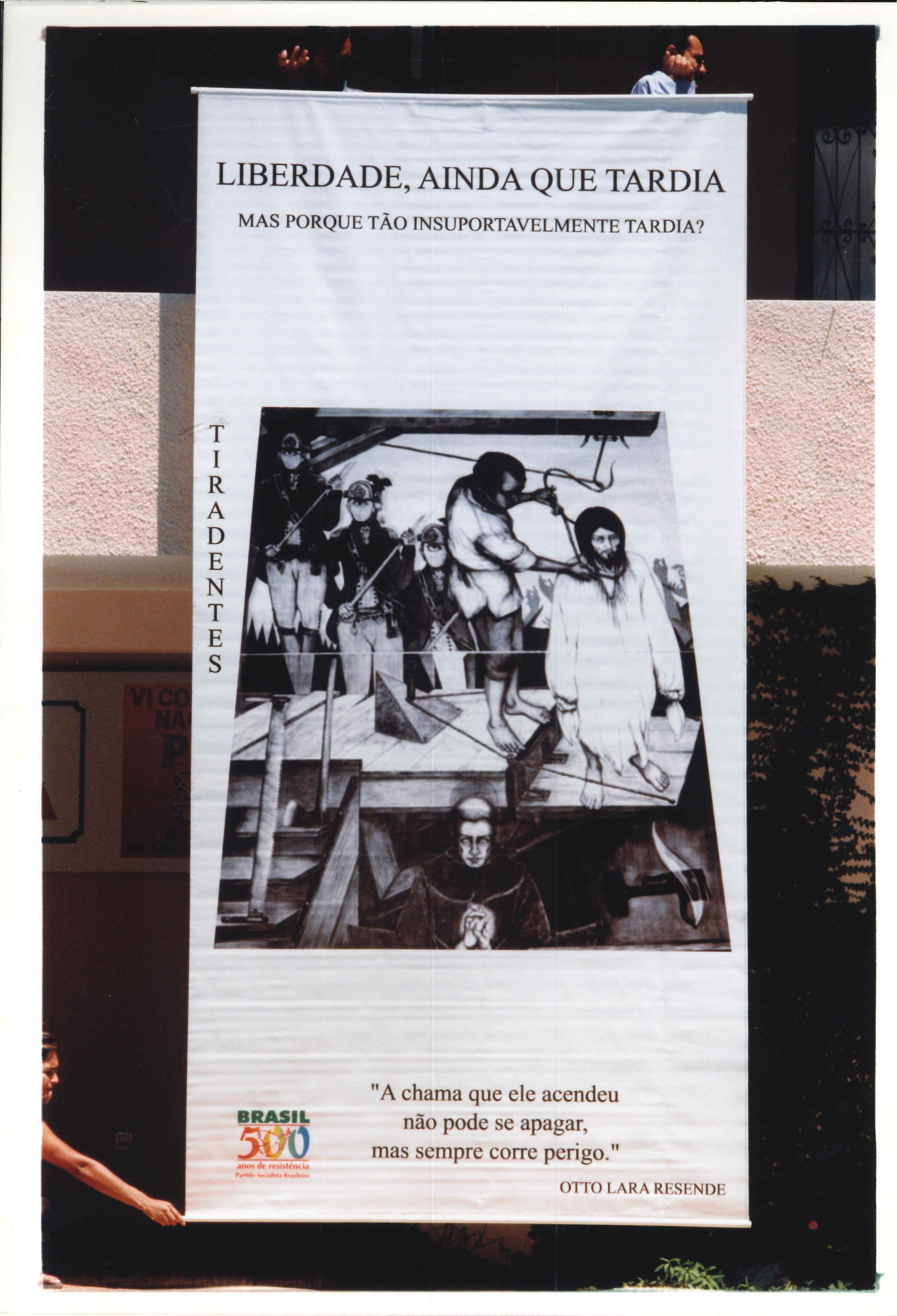 Painel de homenagem aos 500 Anos de Brasil, que aconteceria no ano seguinte.