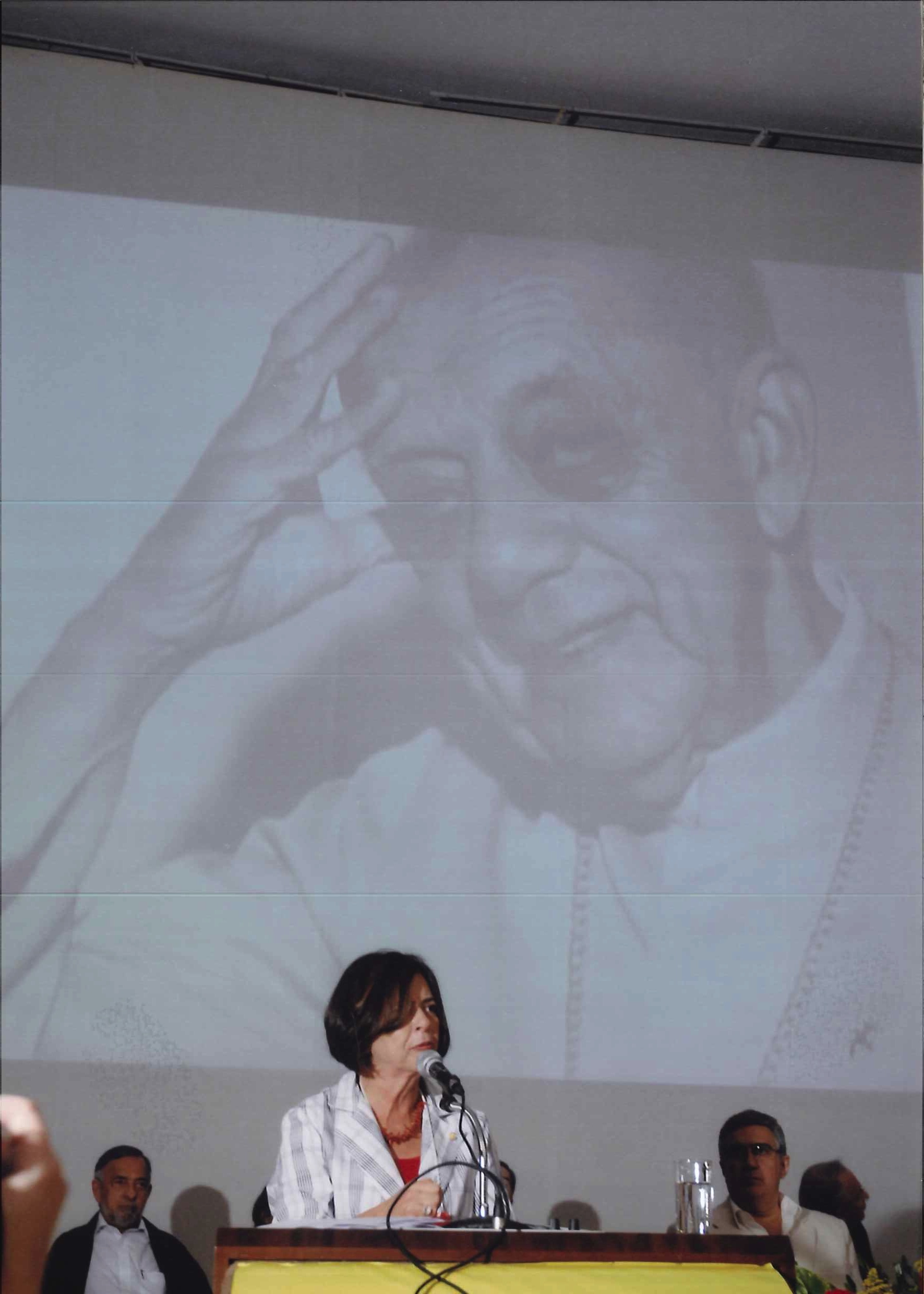 Deputada Ana Arraes pronuncia discurso de homenagem a Dom Helder perante a plenária do XI Congresso.