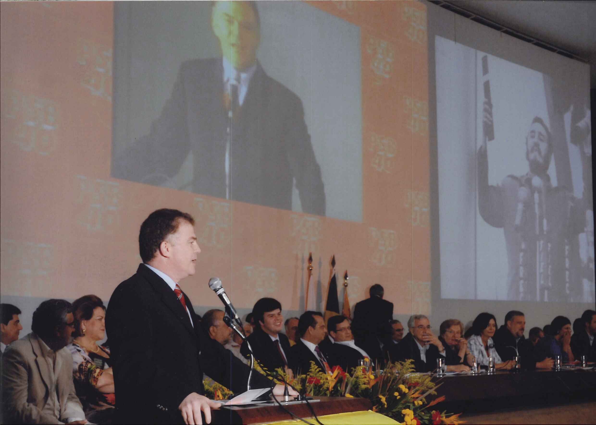 Roberto Amaral em seu pronunciamento em homenagem aos 50 anos da revolução cubana, durante o ato político cultural de inauguração do XI Congresso.