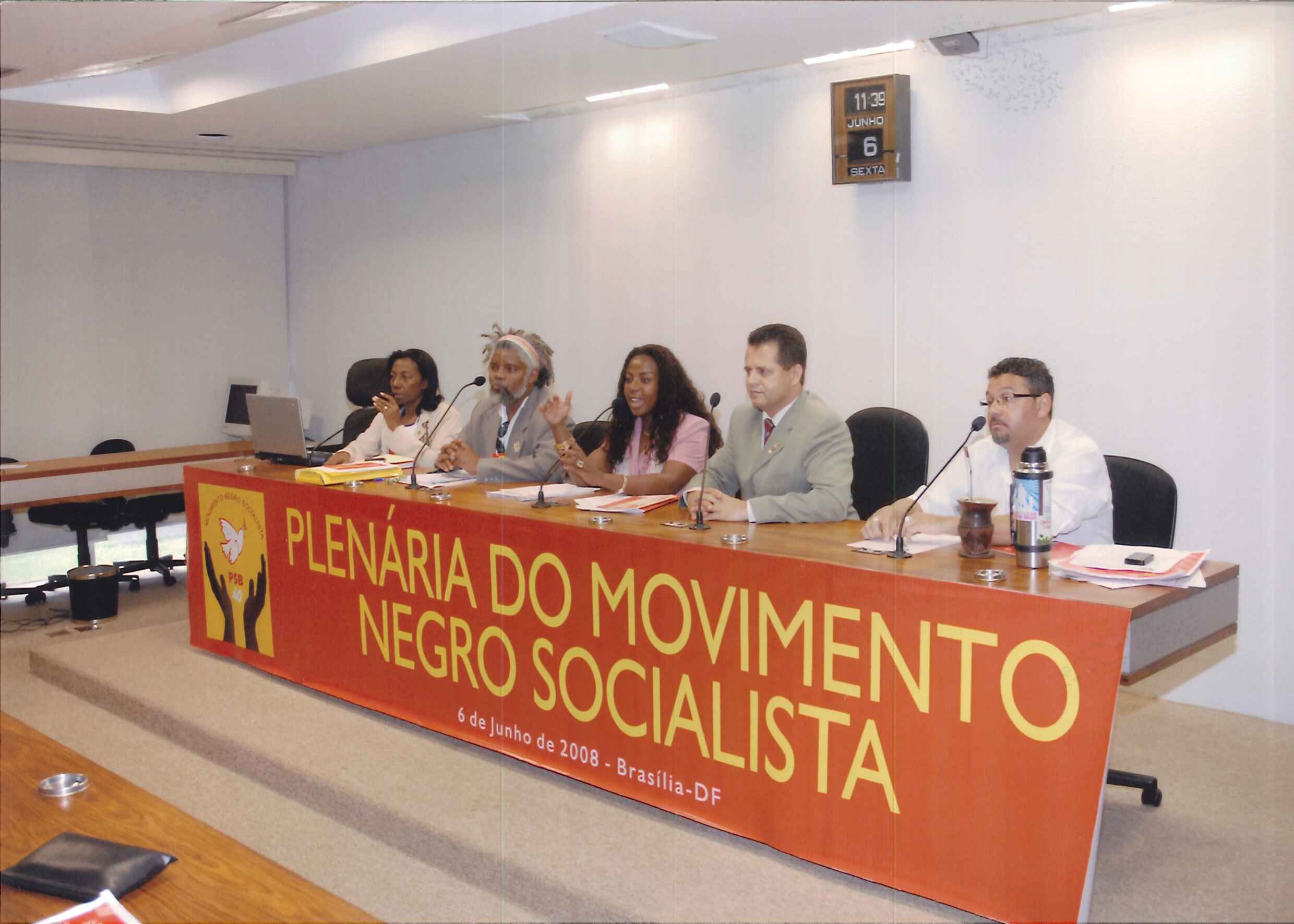 Mesa do Movimento Negro Socialista composta por, da esquerda para a direita: Vilma, Jorge, Valneide, Dep. Valtenir do PSB/MT.