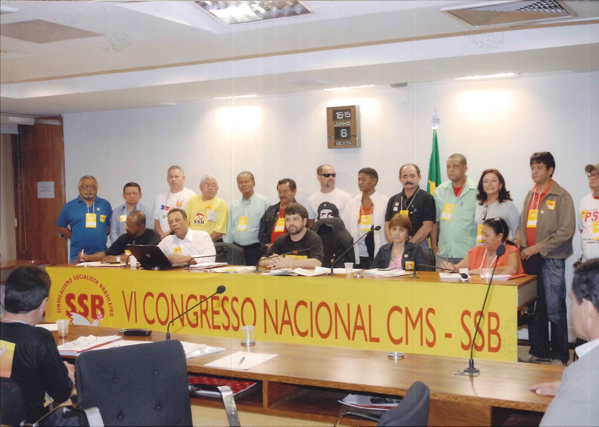 Congresso Nacional Sindical do PSB, ao centro da mesa dirigindo os trabalhos o sindicalista Vicente Selistre.