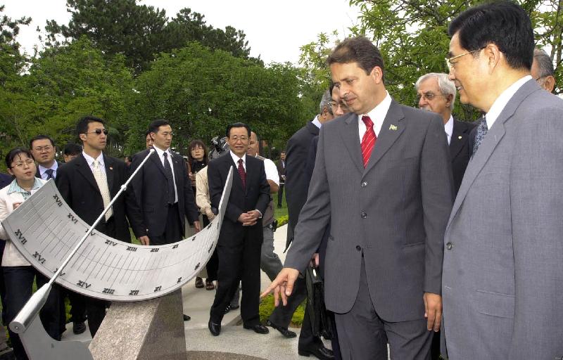 Em 2004, como ministro da Ciência e Tecnologia, Eduardo Campos, visita as instalações do Inpe com o presidente da China, Hu Jintao