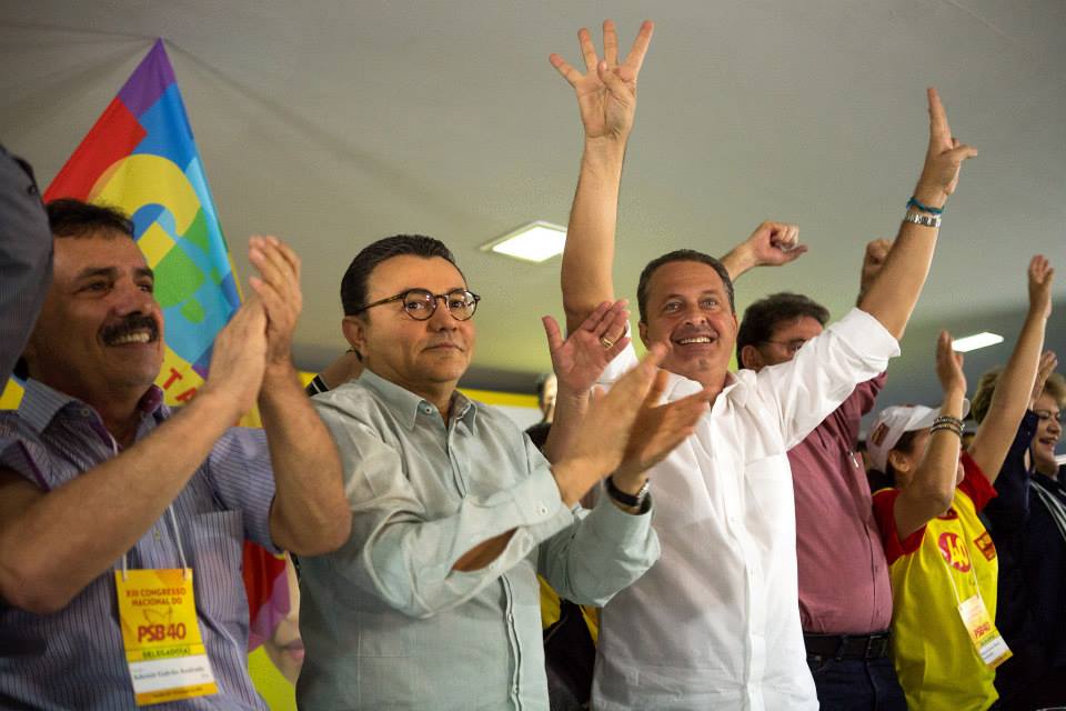 Eduardo Campos participa do XIII Congresso Nacional do PSB, que teve como objetivo debater o cenário político-social brasileiro e as eleições de 2014. A partir da direita: Ademir Andrade, Carlos Siqueira e Eduardo Campos.