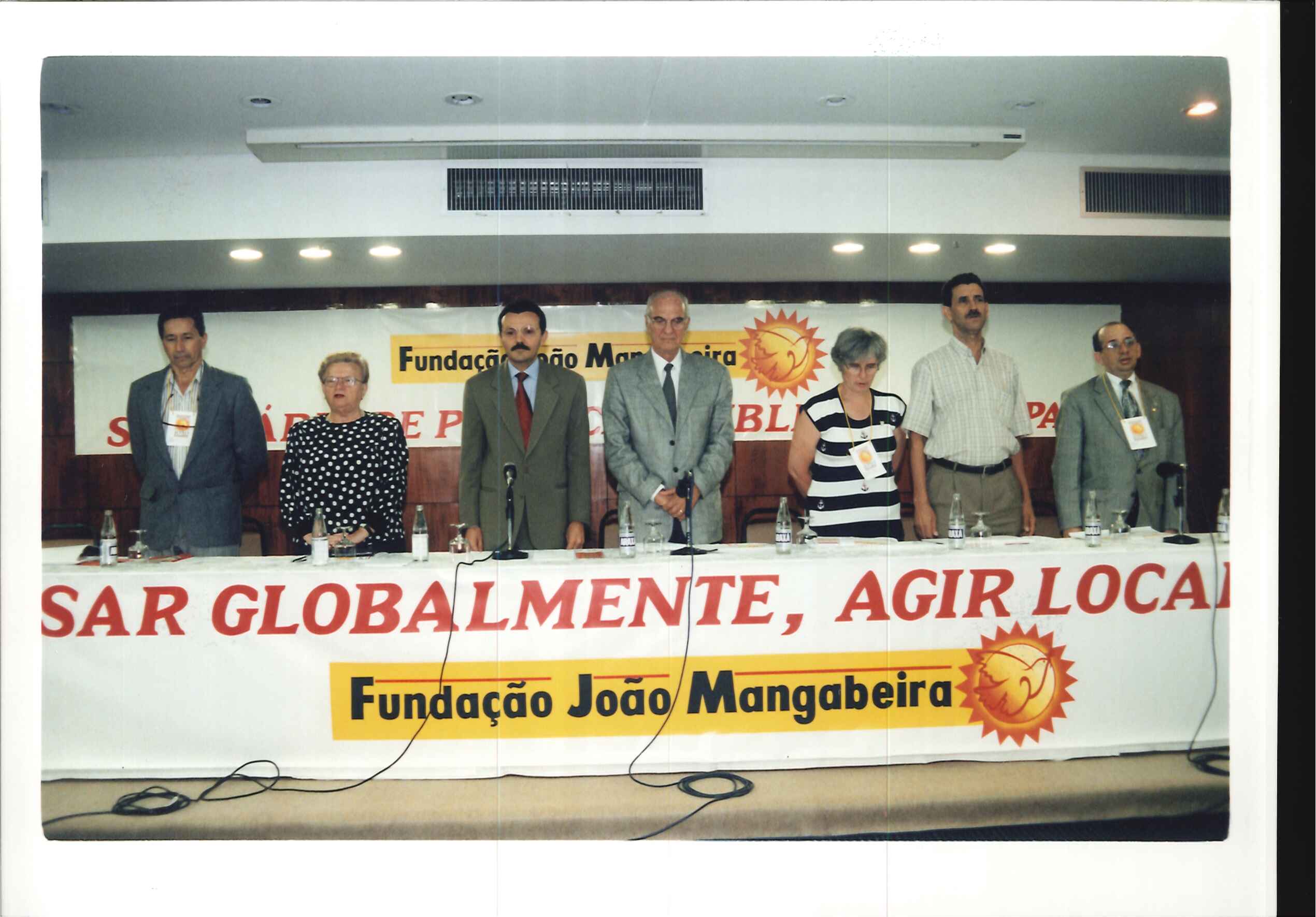 "Integrantes da Mesa do Seminário de políticas Públicas Municipais, realizado dos dias 15 à 17 de outubro de 1999, em Brasíla, DF. Da esquerda para a direita: Dep. Luiza Erundina, 1 Sec. Carlos Siqueira, Sen. Saturnino Braga, Profa. Margarida Vieira, Frei Paulão e José Antonio."