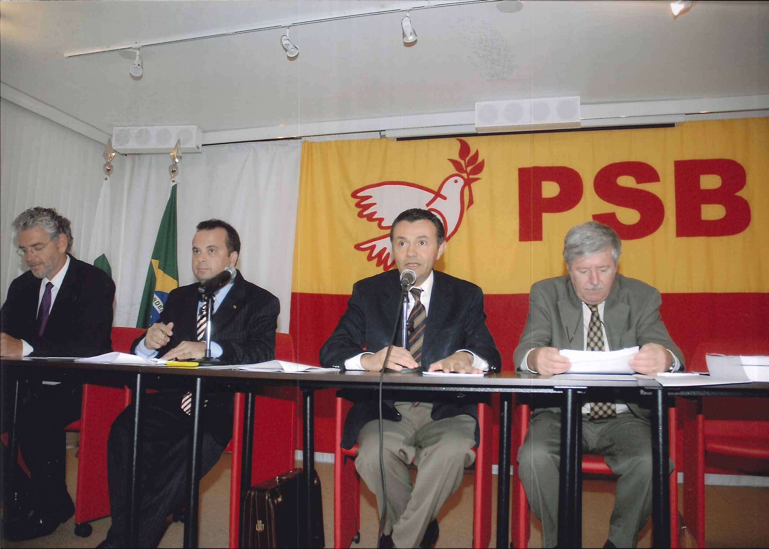 "Mesa de debate sobre Reforma da Educação. Da esquerda para a direita: Prof. Cesar Calegari, Dep. Rogério Marinho (PSB/RN), Carlos Siqueira e Prof. João Batista."
