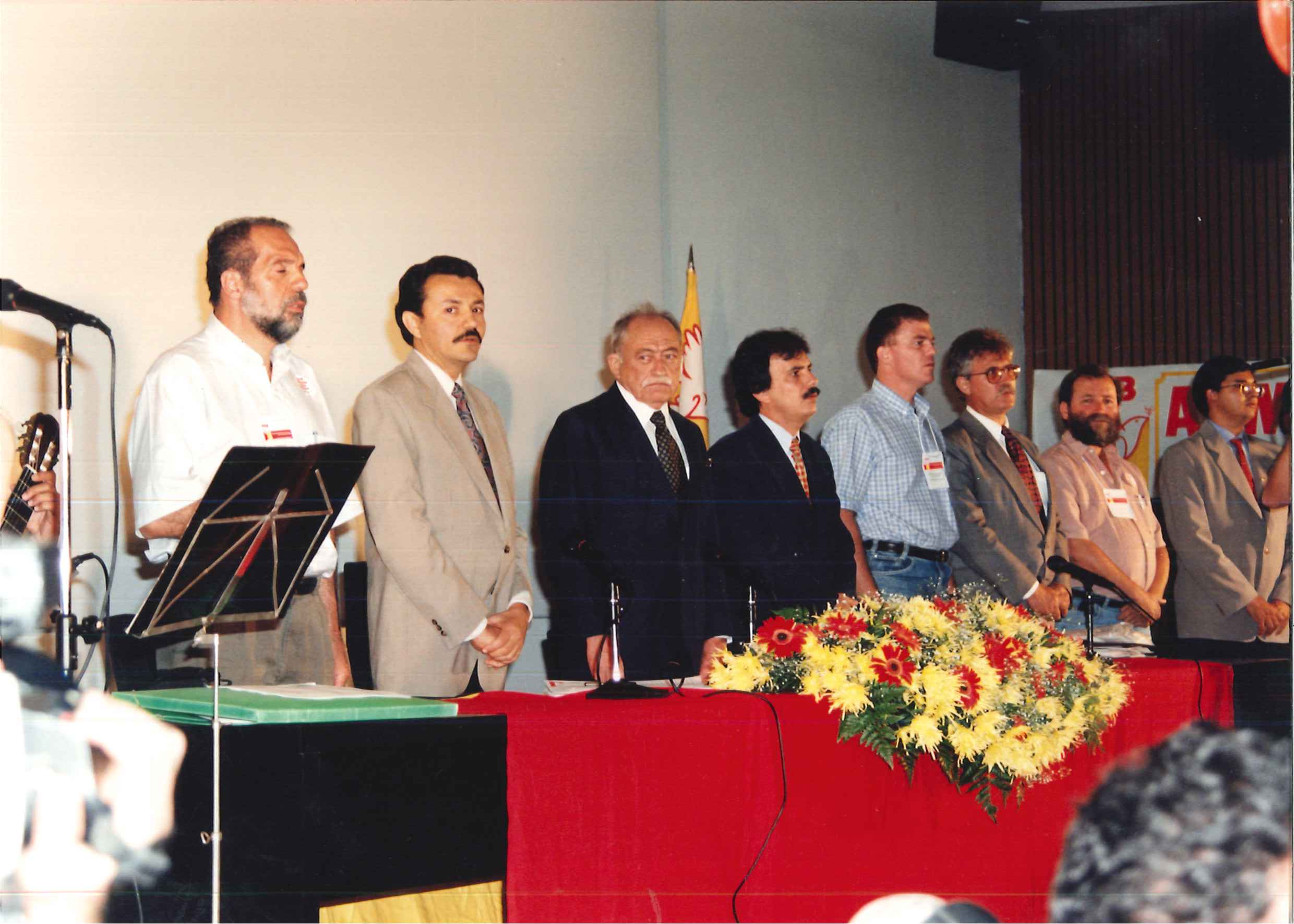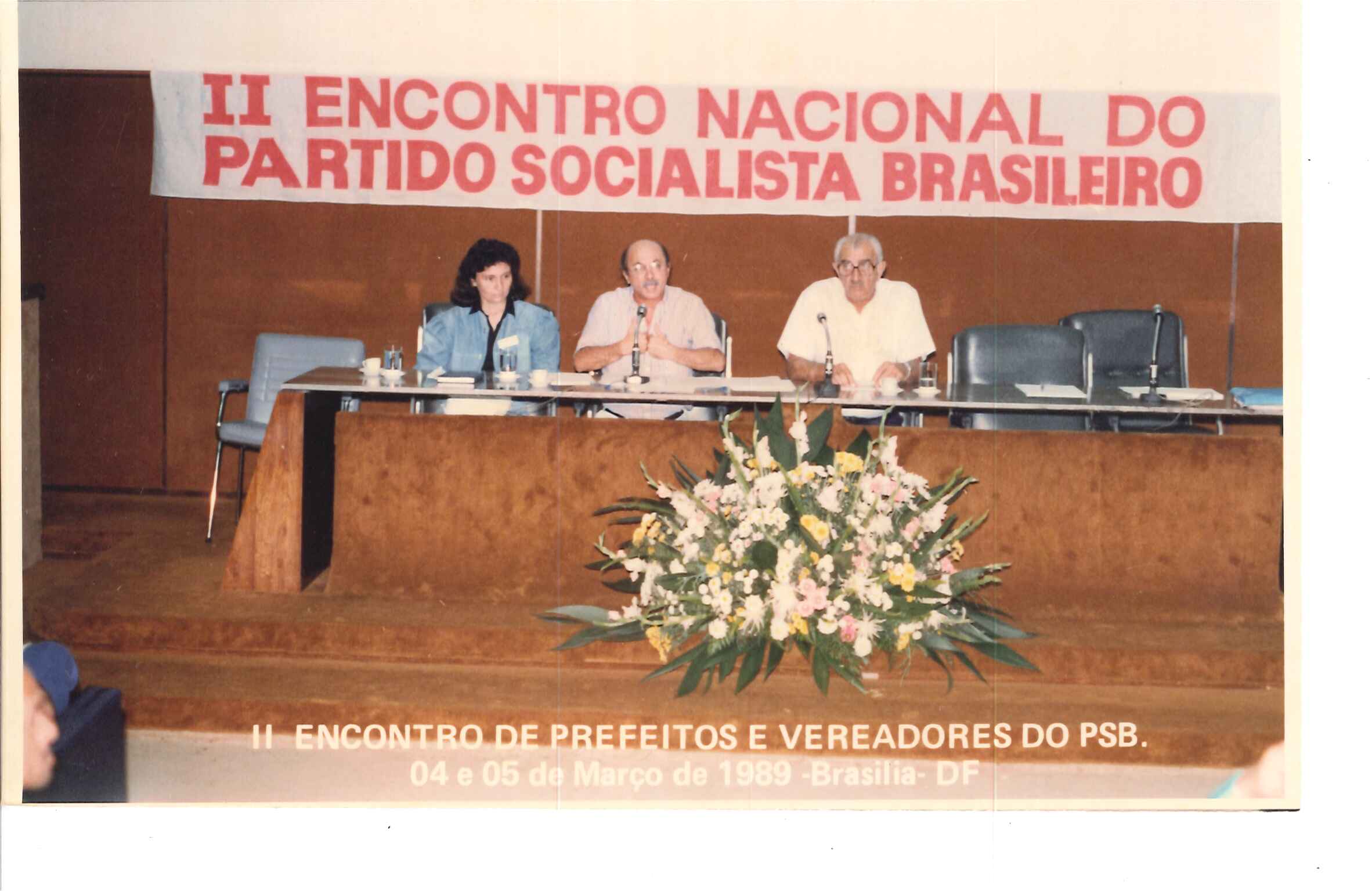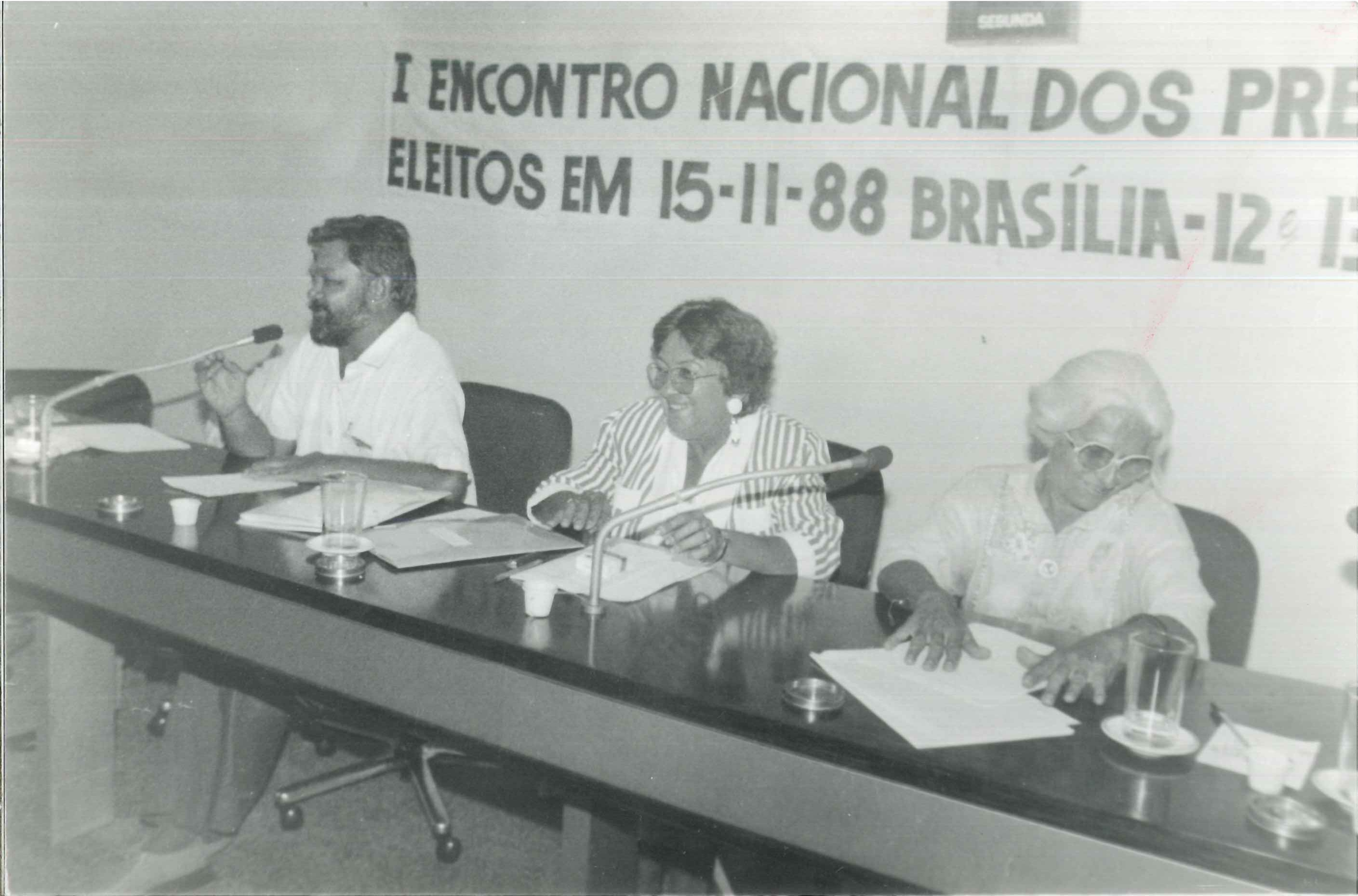 "Mesa do Encontro Nacional de Prefeitos Eleitos pelo PSB em 1988. Ao centro da mesa a Deputada Raquel Capiberibe coordenando os trabalhos."